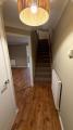Upvc door leading to hallway, emulsion plastered ceiling and walls, wall mounted radiator, wood flooring.