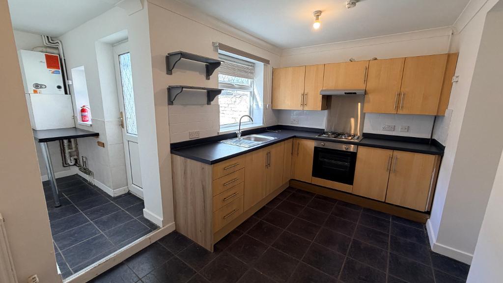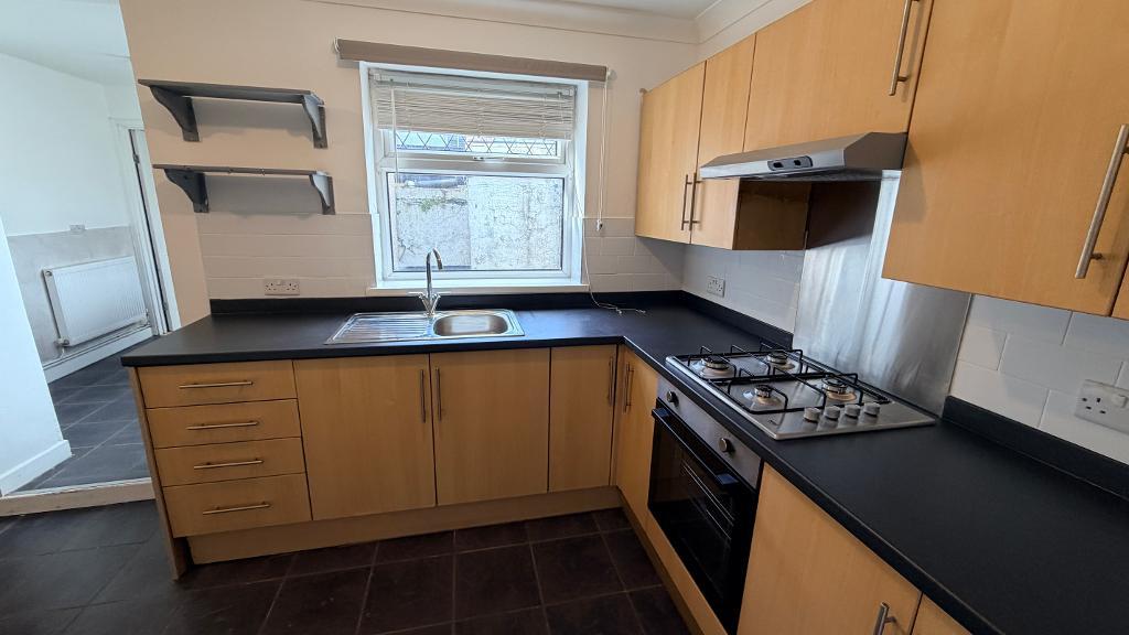 Mid tce, three bedroom property , walking distance to Merthyr Town, porch leading to living room, fitted kitchen with integrated cooker, downstairs bathroom, enclosed rear garden.