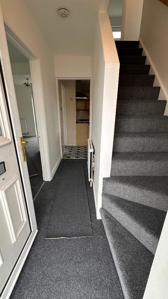 Semi detached , three bed property, front and rear gardens, hallway leading to living room, fitted kitchen , utility room, downstairs W/C