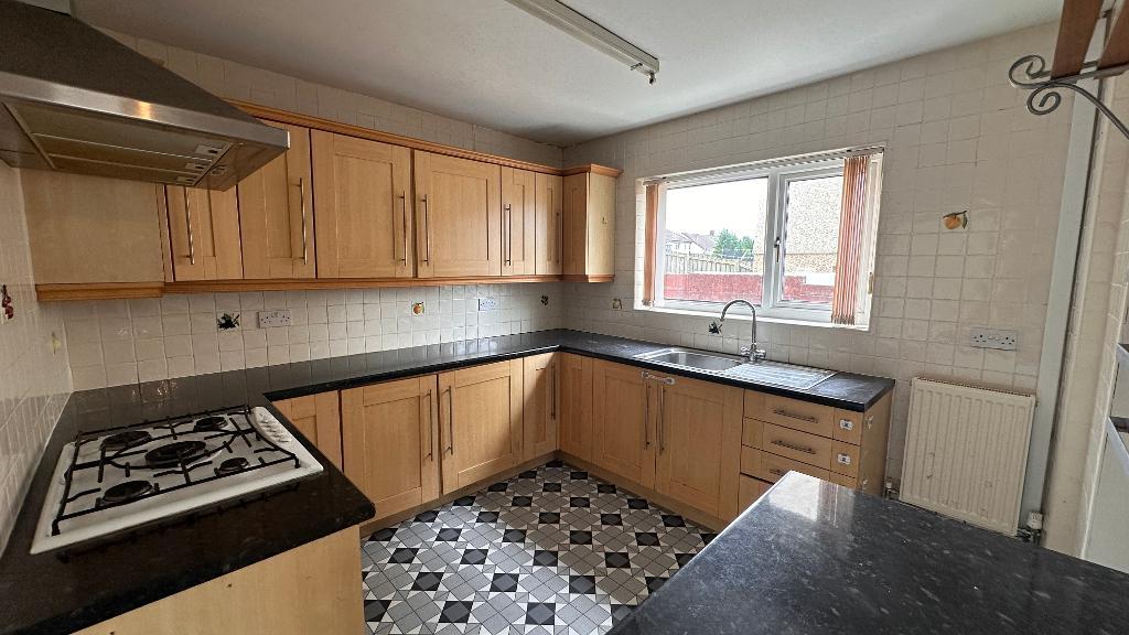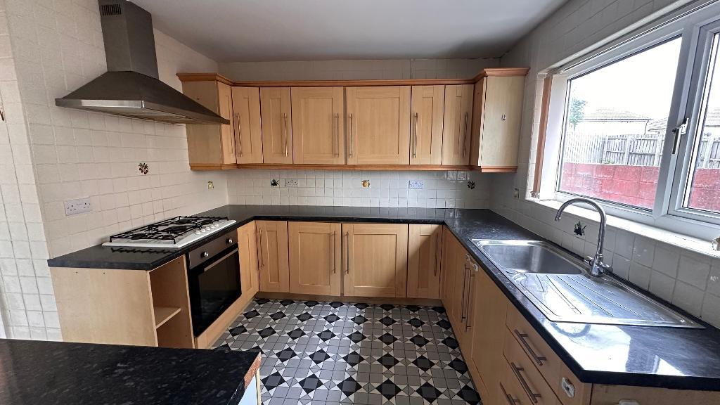 10' 0'' x 9' 5'' (3.07m x 2.88m) Upvc window, emulsion plastered ceiling and walls, fitted wall and base units, extractor hood, fitted cooker, stainless steel sink and drainer, wall tiling, wall mounted radiator, vinyl to flooring.