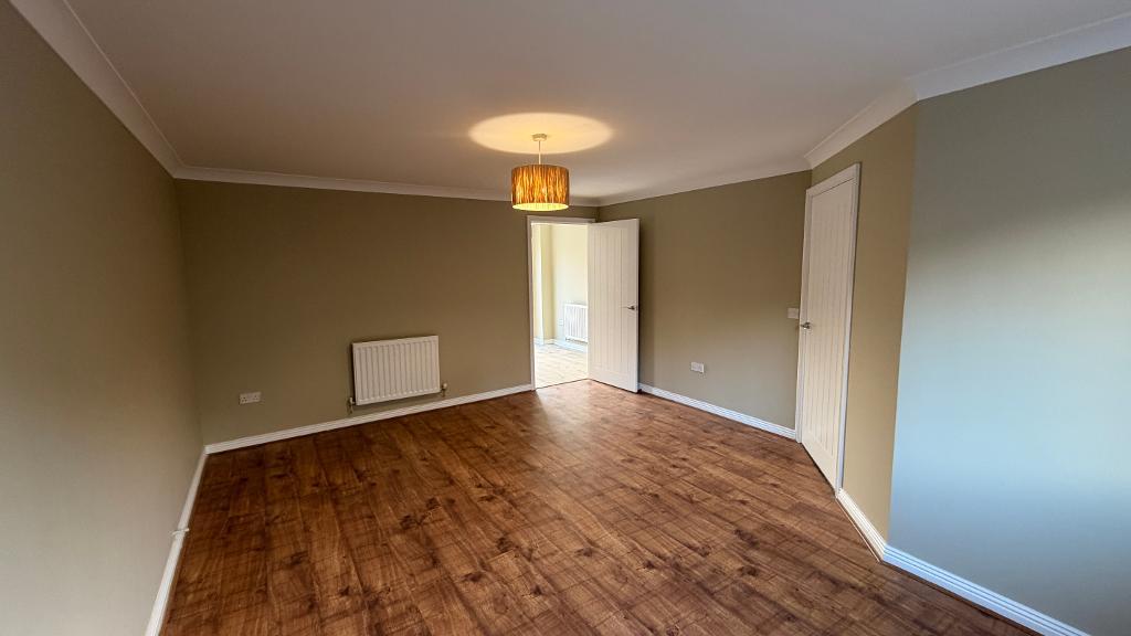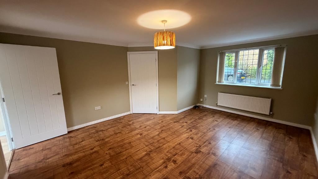 17' 2'' x 13' 6'' (5.24m x 4.12m) Upvc front facing window, with fitted blinds, emulsion plastered ceiling and walls, wall mounted radiator, power points around the room, wood flooring.