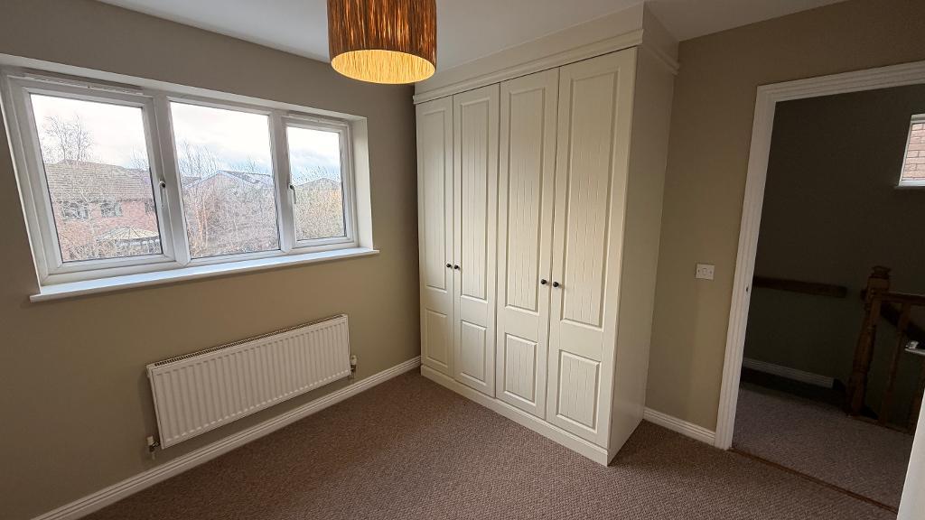 10' 3'' x 9' 3'' (3.14m x 2.83m) Upvc window, views of the surrounding areas. Emulsion plastered ceiling and walls, wall mounted radiator, fitted wardrobes, separate floor to ceiling storage space. Carpet to flooring, power points around the room.