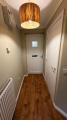 Upvc door leading to hallway, emulsion plastered ceiling and walls, wall mounted radiator, wood flooring.