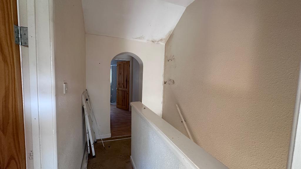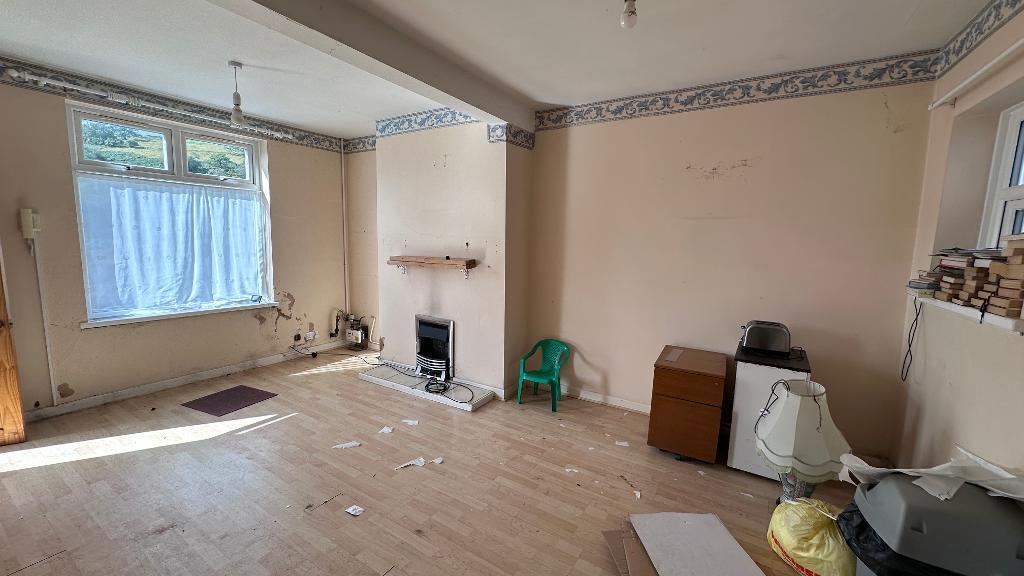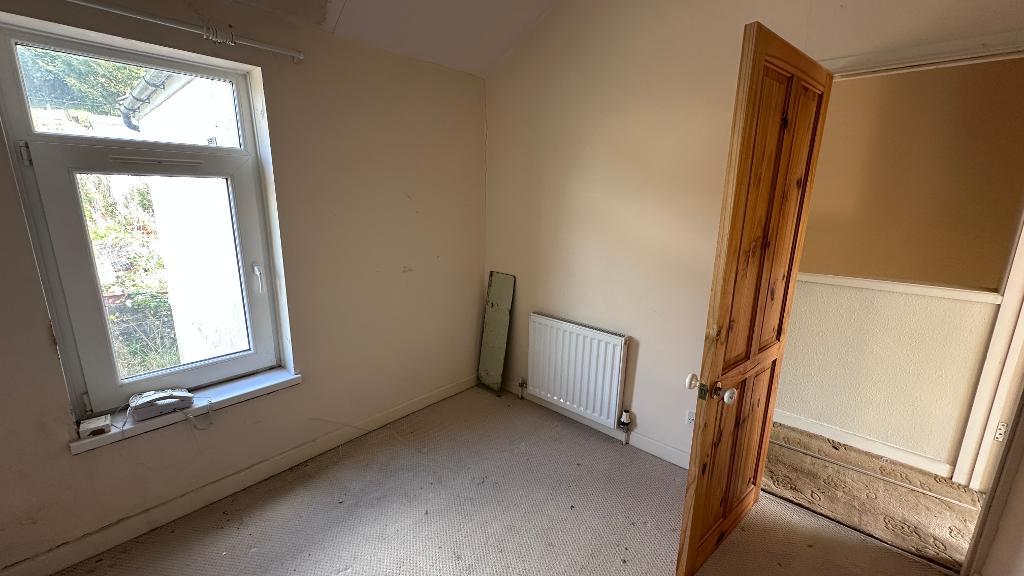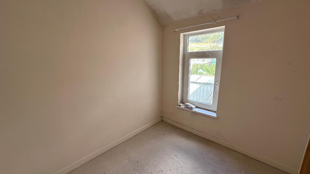 Realistically priced due to renovation required. Two bedroom property in Bedlinog. Porch leading to living room, kitchen , upstairs bathroom , front and rear facing bedrooms, with separate storage room upstairs. NO CHAIN.