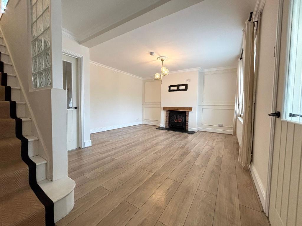 18' 2'' x 13' 6'' (5.54m x 4.14m) Upvc window (fitted blinds), emulsion plastered ceiling and walls, original brick feature fireplace with electric fire. Wall mounted radiators, wood flooring, power points around the room.